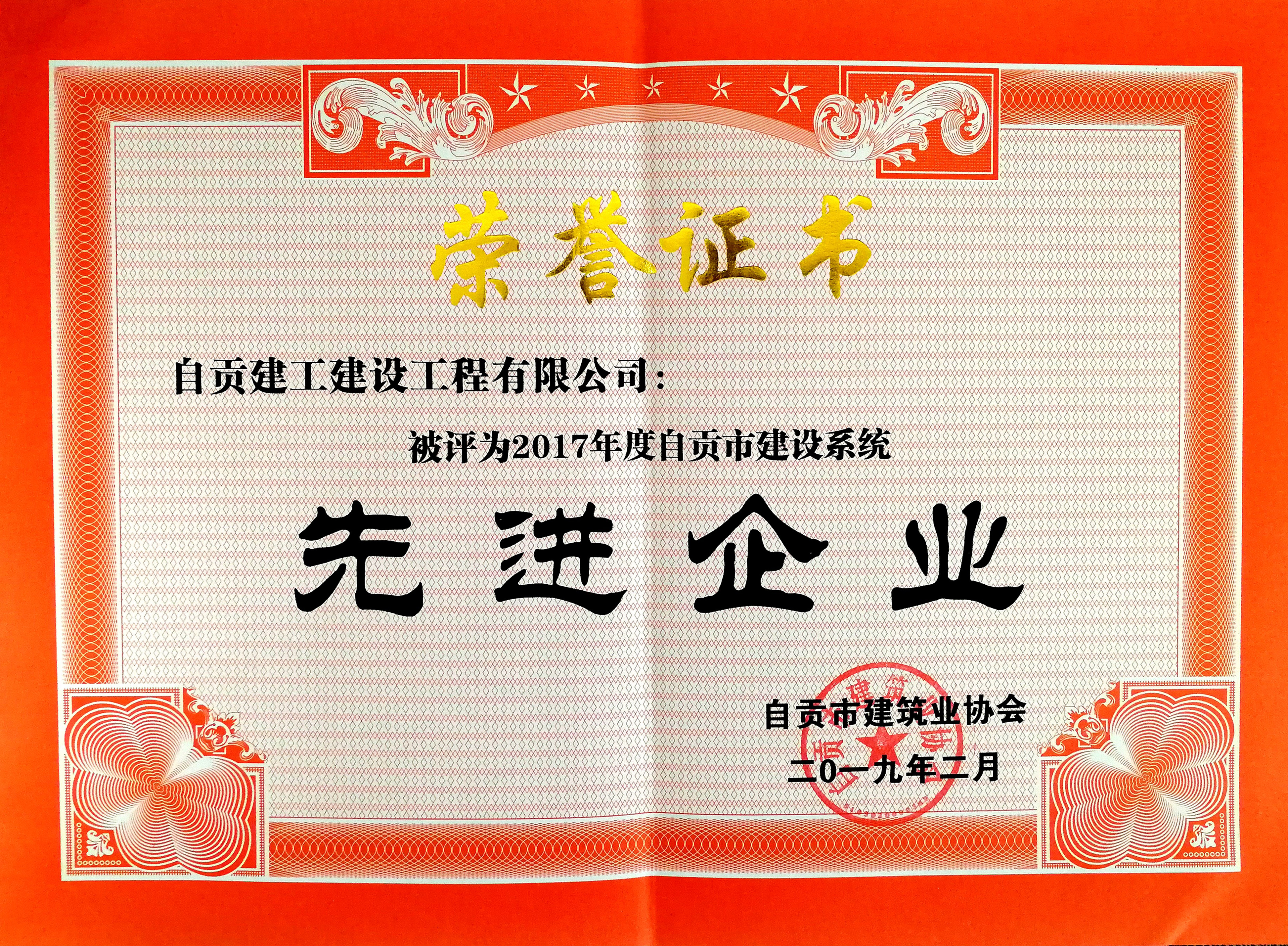 宝威在线(中国)被评为:2017年度自贡市建设系统先进企业
