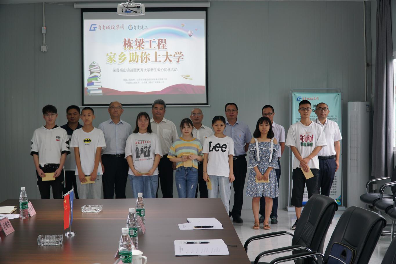 “栋梁工程—家乡助你上大学”荣县高山镇贫困优秀大学新生爱心助学活动捐赠仪式在自贡建工正安项目部举行