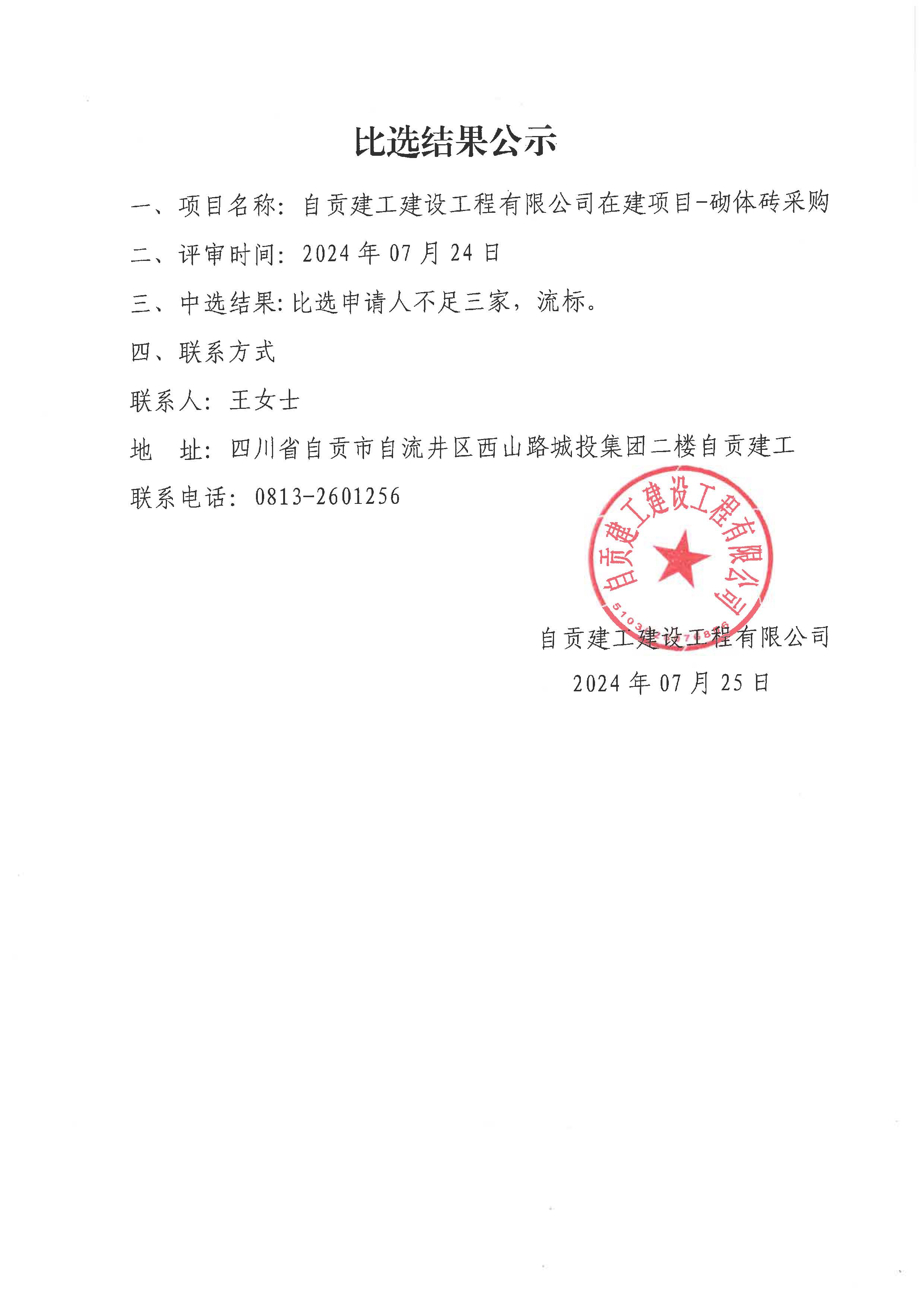 宝威在线(中国)在建项目-砌体砖采购比选结果公示