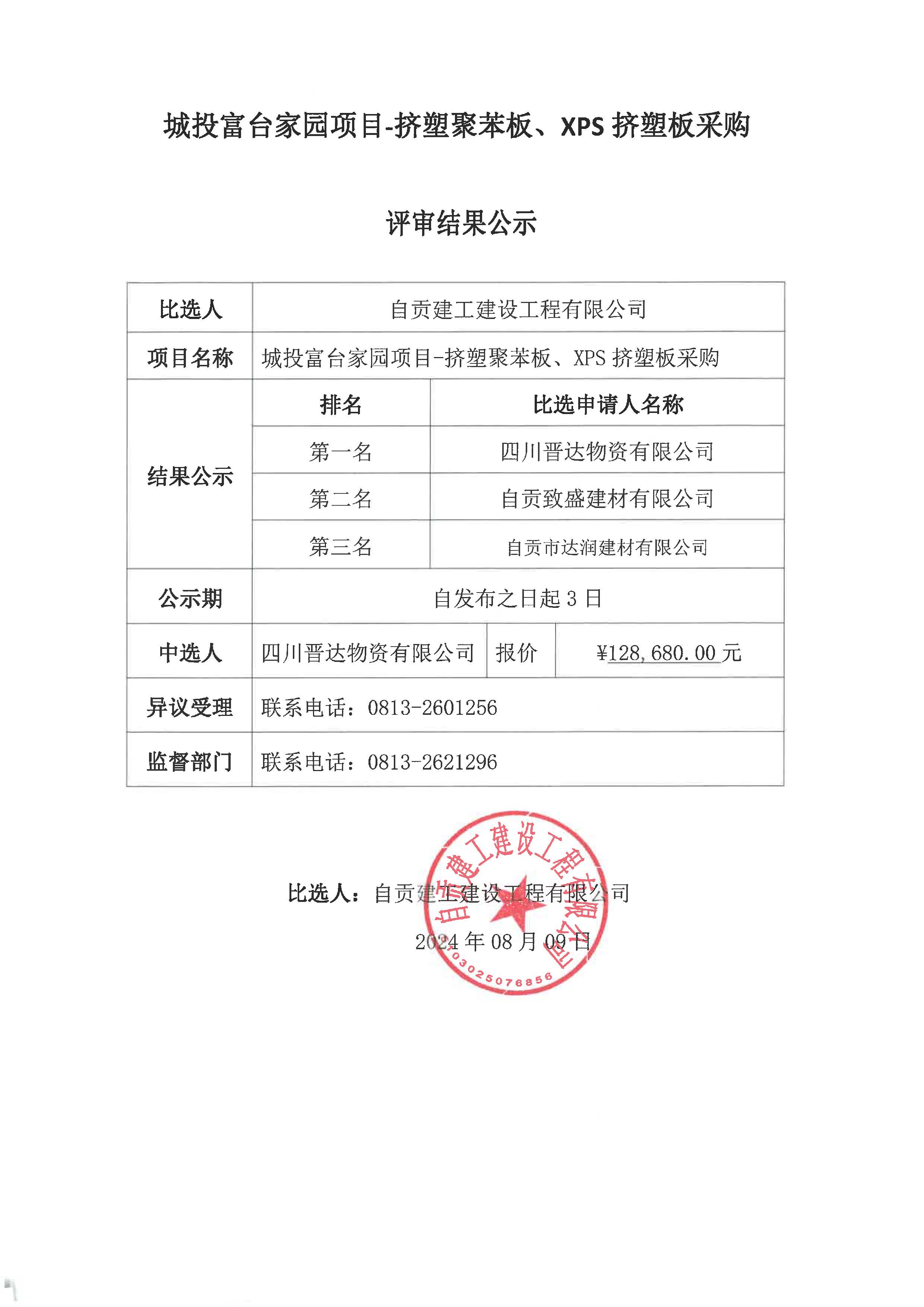 城投富台家园项目-挤塑聚苯板、XPS挤塑板采购比选结果公示