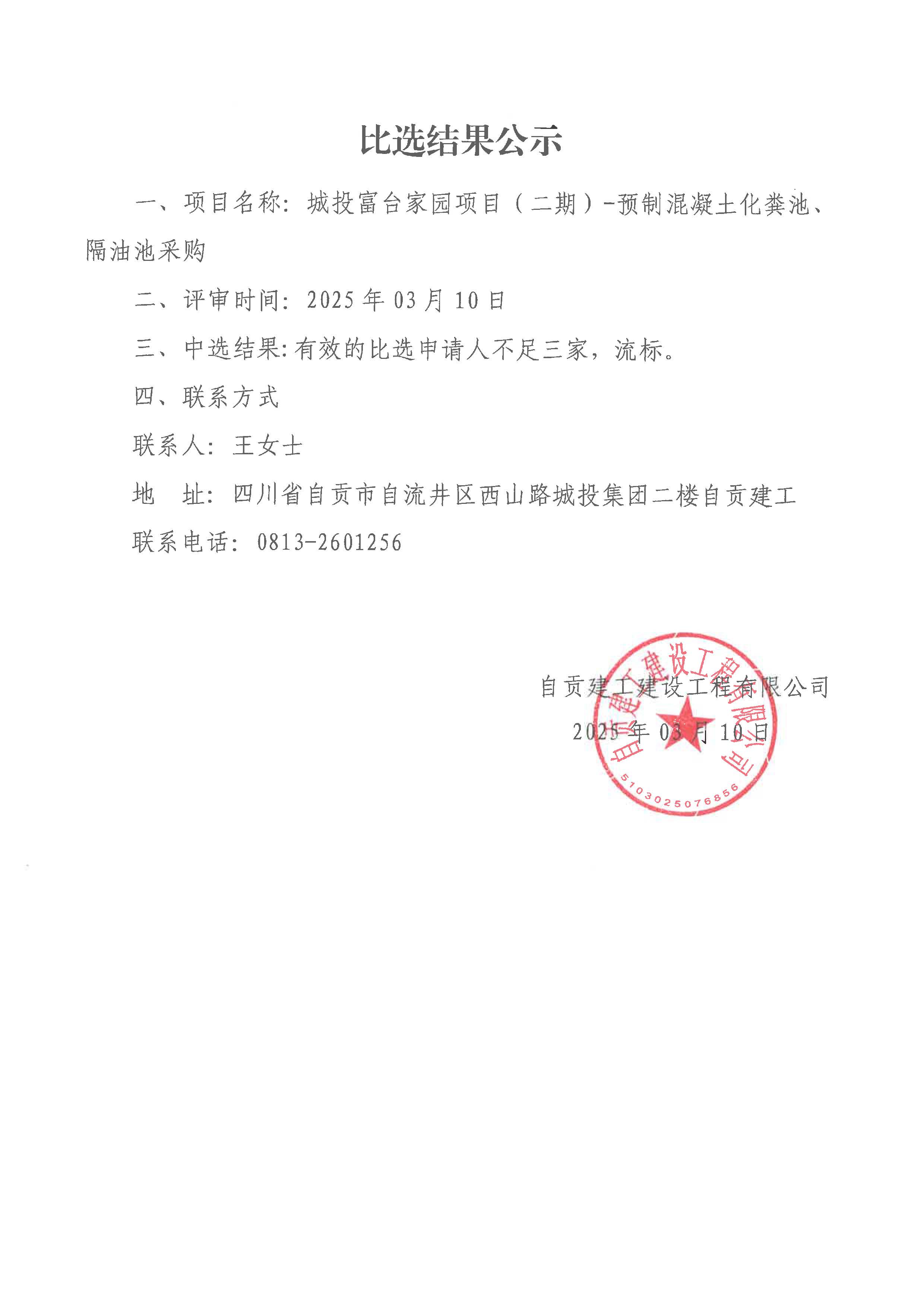 城投富台家园项目(二期)-预制混凝土化粪池、隔油池采购比选结果公示
